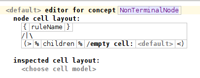The editor for NonTerminalNode consists of a single tree cell. The top part of the tree cell represents this node. We will use the ruleName to represent it. In the bottom part instead we should pick the relation contains the children to be displayed in the tree