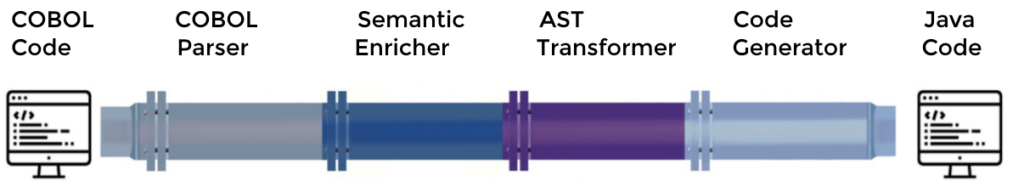 The COBOL parser and the Semantic Enricher components can be re-used for, let’s say, building an interpreter. This approach increases productivity and improves the quality of the software. For instance, any improvement to a core component for one project gets automatically shared with others.